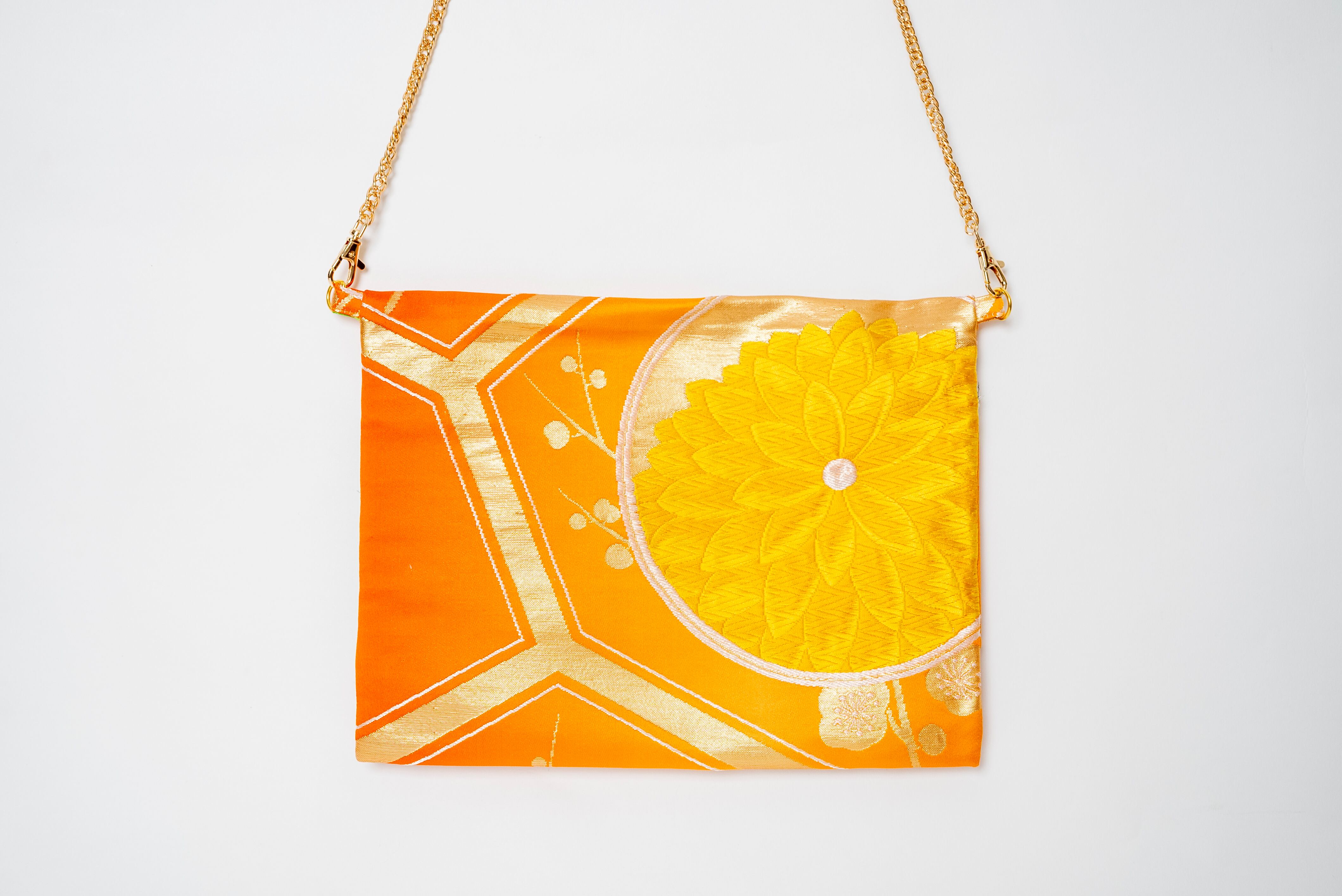 着物帯の生地を使ったリメイクバッグ。一つ一つ柄が違うのが魅力。どれも一点もの。繊細な柄物や鮮やかな色使いが、周りと差をつけるおしゃれ度を引き立てます。