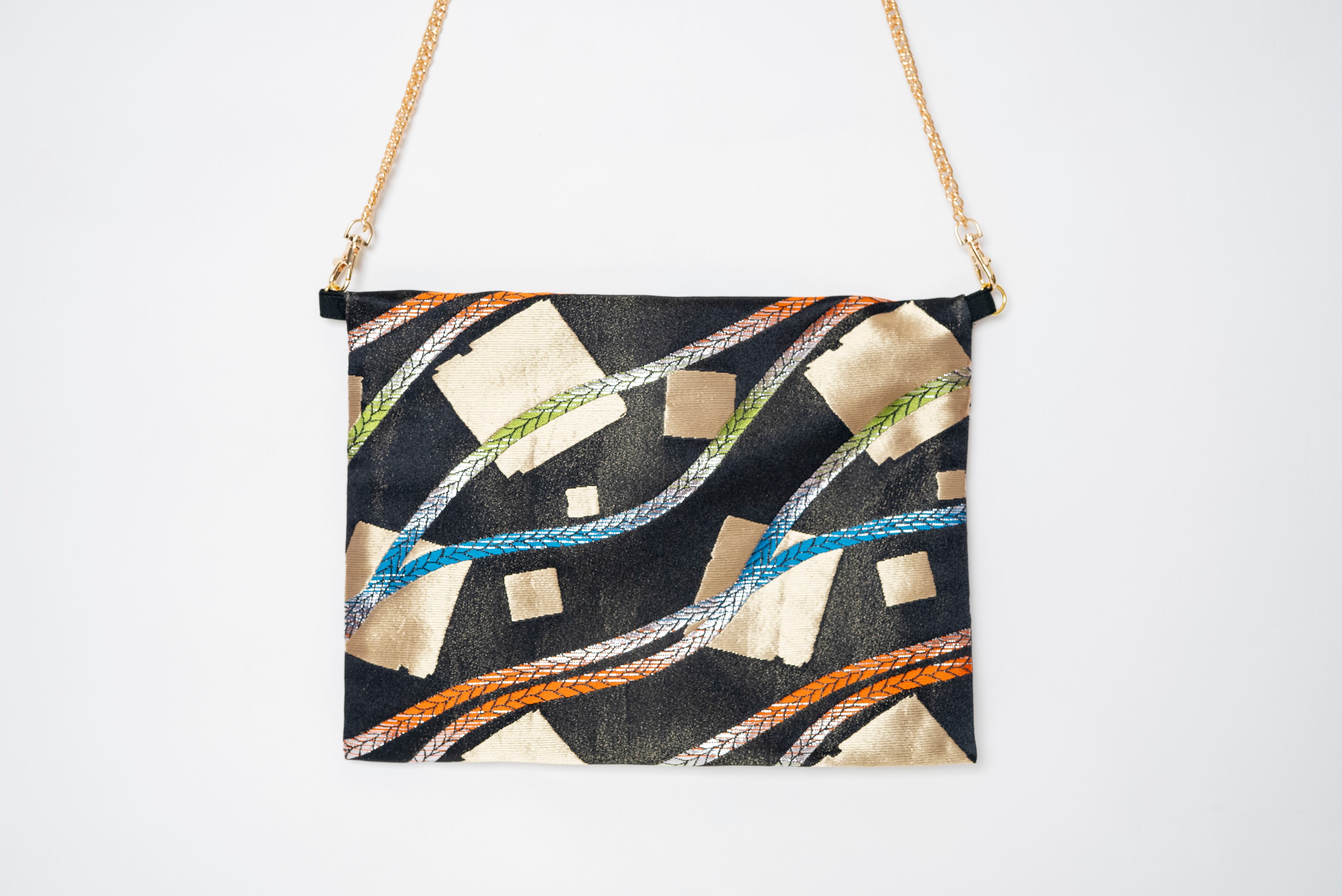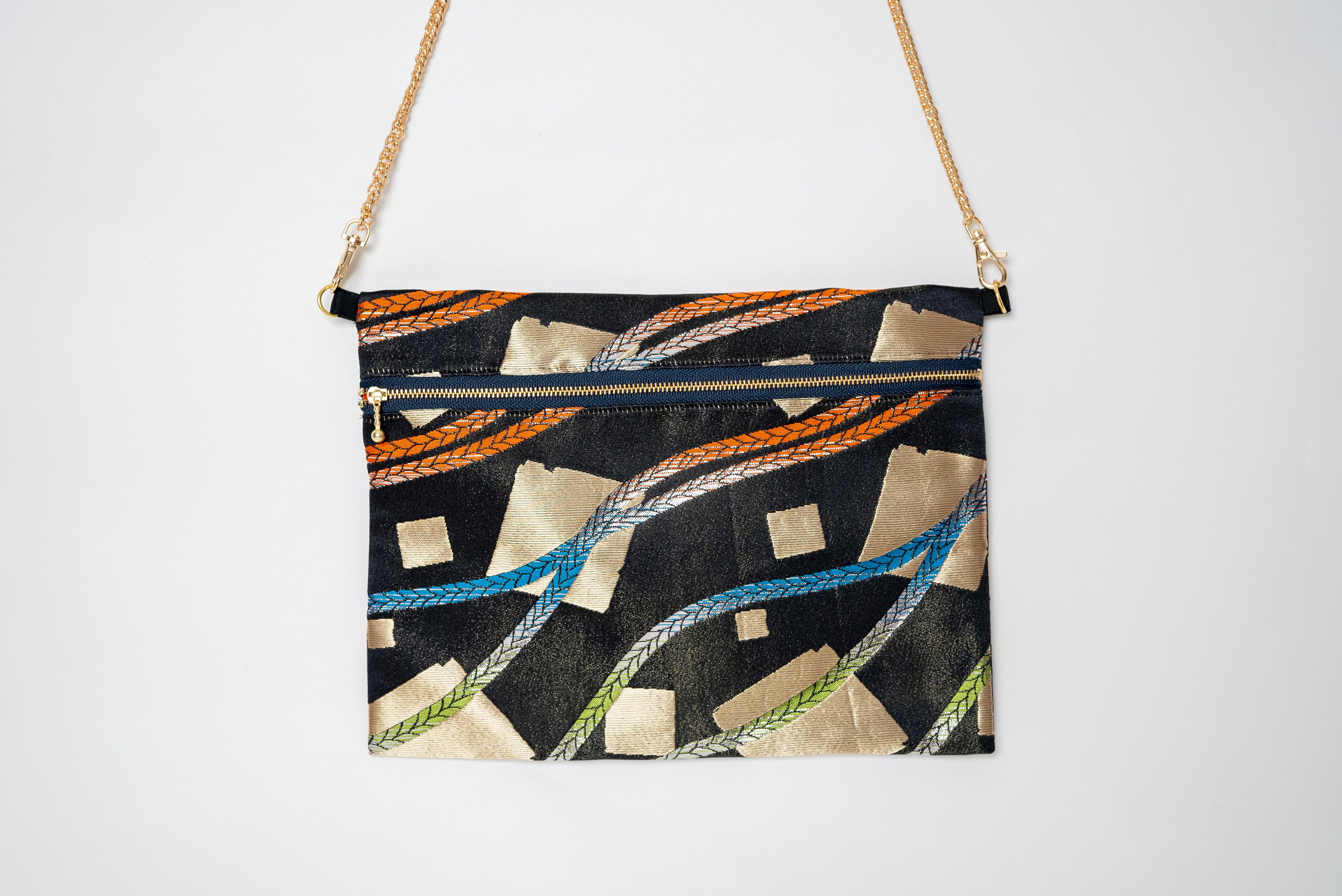 着物帯の生地を使ったリメイクバッグ。一つ一つ柄が違うのが魅力。どれも一点もの。繊細な柄物や鮮やかな色使いが、周りと差をつけるおしゃれ度を引き立てます。